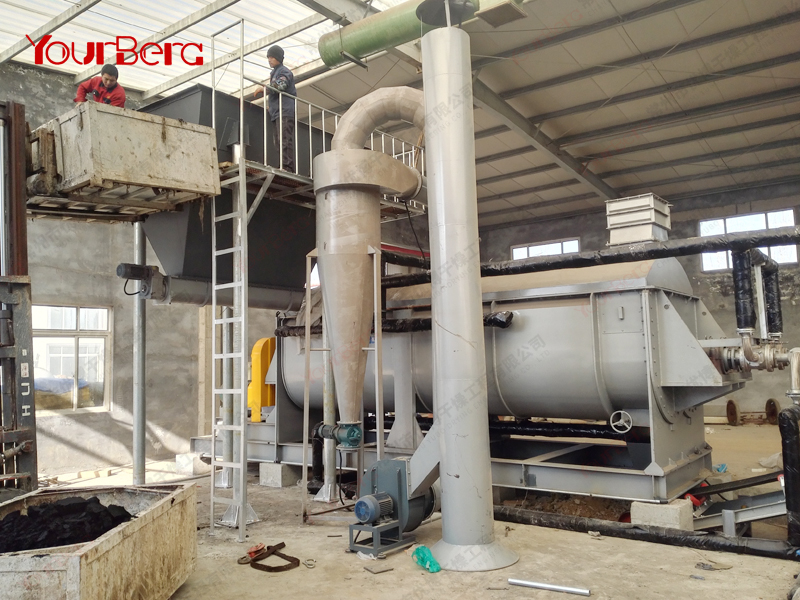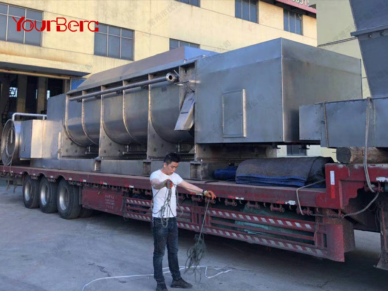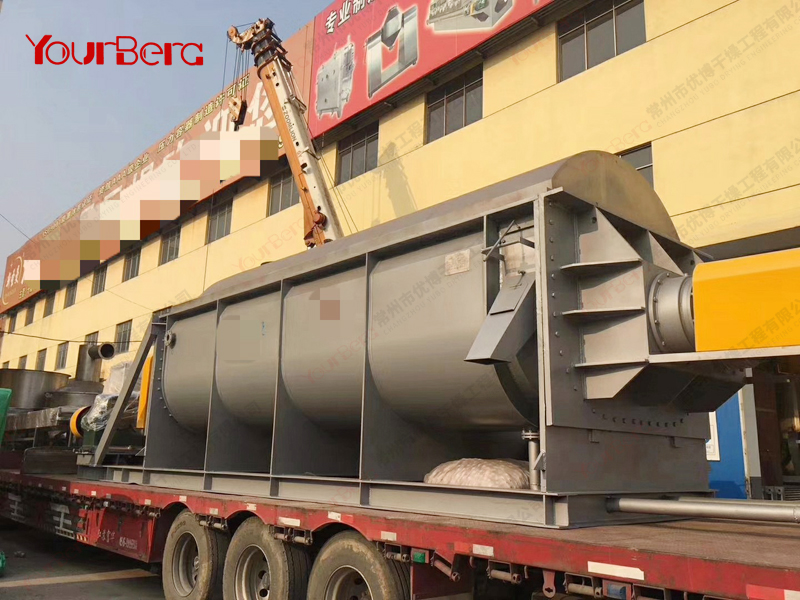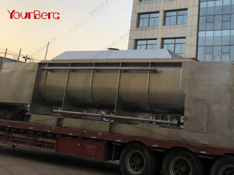 空心軸上密集排列著楔型中空漿葉,熱介質(zhì)經(jīng)空心軸流經(jīng)漿葉。單位有效容積內(nèi)傳熱面積很大,熱介質(zhì)溫度從-40℃到320℃,可以是水蒸汽,也可以是液體型:如熱水、導(dǎo)熱油等。間接傳導(dǎo)加熱,沒有攜帶空氣帶走熱量,熱量均用來加熱物料。熱量損失僅為通過器體保溫層向環(huán)境的散熱。楔型漿葉傳熱面具有自清潔功能。物料顆粒與楔型面的相對運動產(chǎn)生洗刷作用,能夠洗刷掉楔型面上附著物料,使運轉(zhuǎn)中一直保持著清潔的傳熱面。漿葉干燥機的殼體為Ω型,殼體內(nèi)一般安排二到四根空心攪拌軸。殼體有密封端蓋與上蓋,防止物料粉塵外泄而充分發(fā)揮作用。