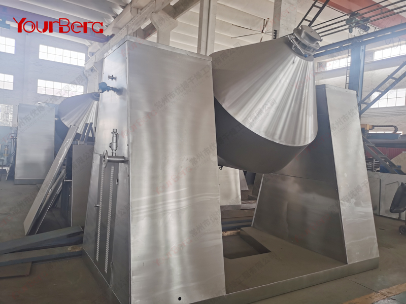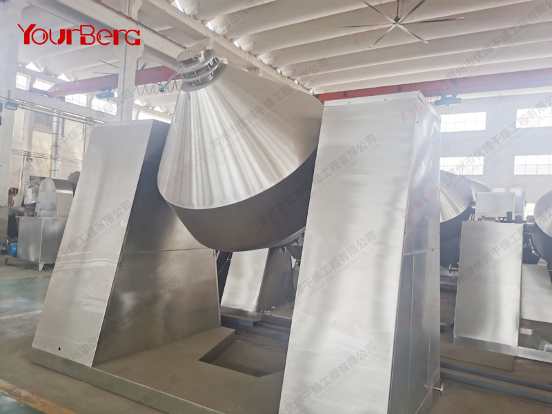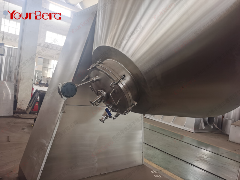 ◎在動(dòng)力驅(qū)動(dòng)下,罐體作緩慢旋轉(zhuǎn),罐內(nèi)物料不斷地混合,從而達(dá)到強(qiáng)化干燥的目的。