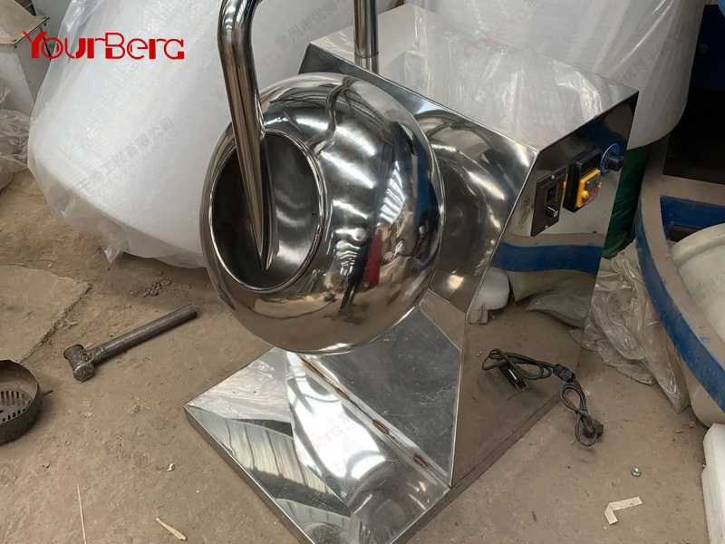 本機(jī)用以制藥、食品行業(yè)為片劑、丸劑包裹糖衣。也可用作滾抄豆、果品類成熟之用。其特點(diǎn)是糖衣球的傾斜角度為水平向上30度,球下可以放置電爐、煤氣等直接加熱設(shè)備。隨機(jī)附單獨(dú)的電熱式鼓風(fēng)機(jī),出風(fēng)管伸入球內(nèi)可作加熱或吹冷,熱量可以分二檔調(diào)節(jié)??筛鶕?jù)客戶需求,增加變頻調(diào)速、外加熱、溫度控制、噴液系統(tǒng)等用以包制薄膜藥片。BYF系列薄膜包衣機(jī)是根據(jù)客戶需要在BY系列荸薺式糖衣機(jī)基礎(chǔ)上改進(jìn)而來(lái),分無(wú)極轉(zhuǎn)速和固定轉(zhuǎn)速倆種型號(hào),(每分鐘5-50轉(zhuǎn)可調(diào))。配有噴槍、支架、儲(chǔ)液罐和帶變頻器的電器箱。